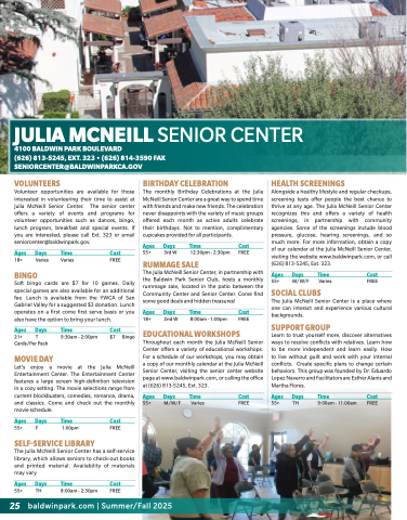 55+ 3rd W 12:30pm - 2:30pm FREE