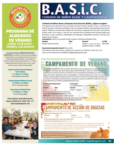 Inscripción: Centro Comunitario Esther Snyder, 4100 Bulevar Baldwin Park