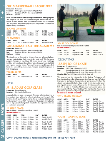 City of Downey Parks & Recreation Department • (562) 904-7238