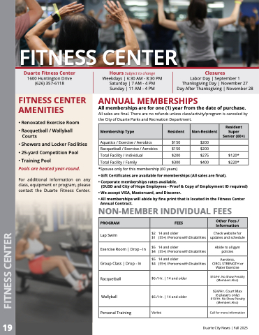 contact the Duarte Fitness Center.