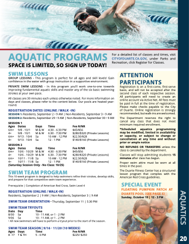 SWIM TEAM SEASON | 9/16 - 11/20 (10 WEEKS)
