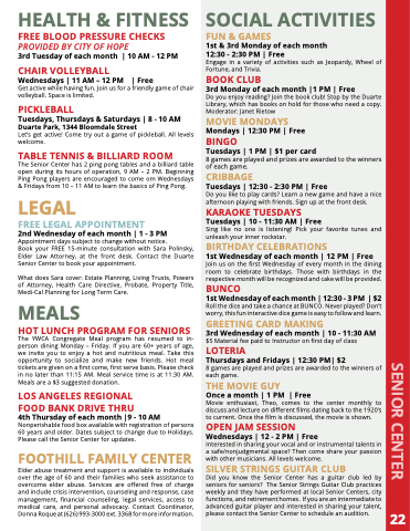 please contact the Senior Center to schedule an audition. SENIOR CENTER