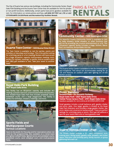 CITYOFDUARTE.CA.GOV/Parks and Recreation/City Facilities Rentals.