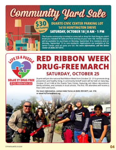 Duarte will join the national Red Ribbon Week from October 23 - 31 to promote drug