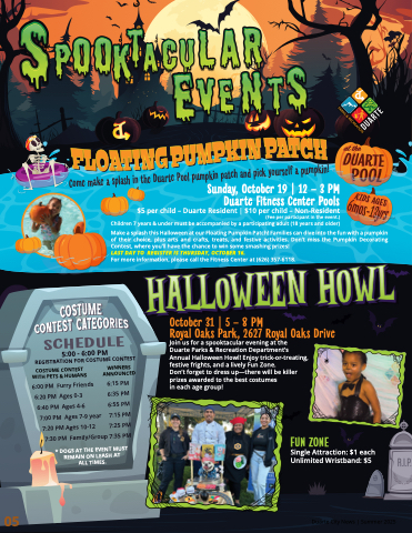 Come make a splash in the Duarte Pool pumpkin patch and pick yourself a pumpkin! Sunday, October 19 | 12 – 3 PM Duarte Fitness Center Pools