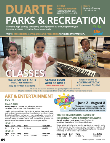 (Duarte residents living in the incorporated City of Duarte). Visit City Hall for more details.