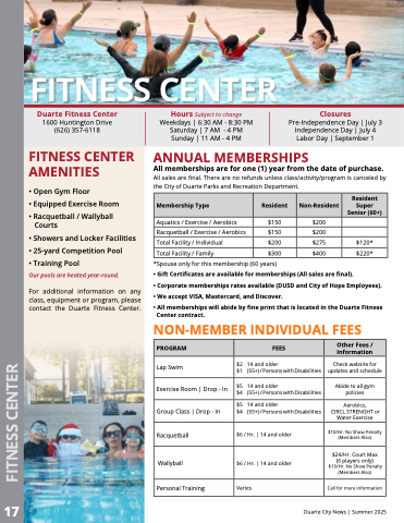 • All memberships will abide by fine print that is located in the Duarte Fitness