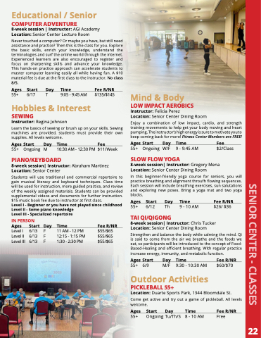 55+ 6/9 M/F 9:30 - 10:30 AM $60/$70