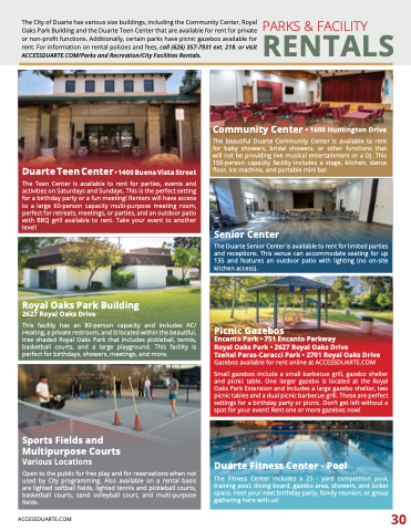 ACCESSDUARTE.COM/Parks and Recreation/City Facilities Rentals.