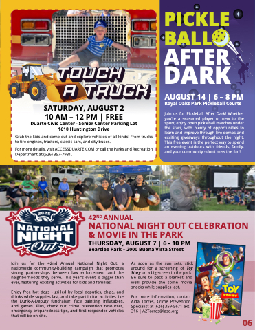 For more details, visit ACCESSDUARTE.COM or call the Parks and Recreation