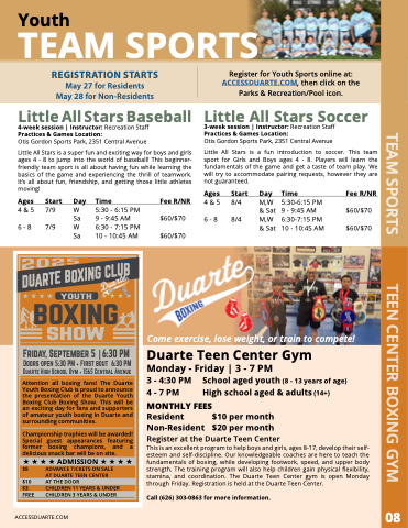 through Friday. Registration is held at the Duarte Teen Center.