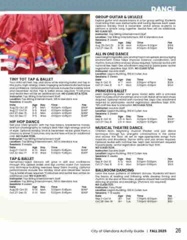 rhythm. Dance attire and jazz shoes required. Optional recital with