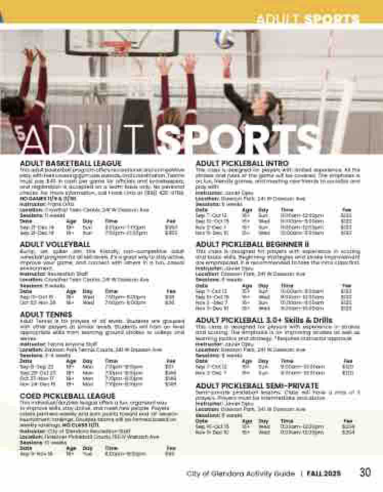 and registration is accepted on a team basis only. No personal checks. For more information, call Frank Ortiz at (818) 425-9789. NO GAMES 11/9 & 11/30.