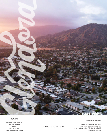 City of Glendora Community Services Department 116 East Foothill Boulevard Glendora, CA 91741-3335 DATED MATERIAL FALL 2025 POSTAL CUSTOMER PRESORTED STANDARD U.S. POSTAGE PAID PERMIT NO. 92 GLENDORA, CA 91740 ECRWSS