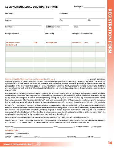 ADULT/PARENT/LEGAL GUARDIAN CONTACT: Receipt #: