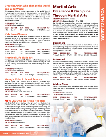 experience. Material fee: $25 (pay on the 1st day of class)