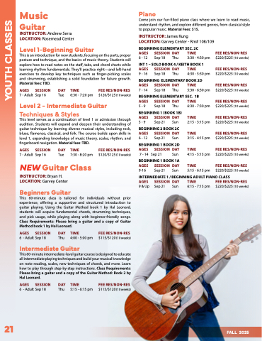 blues, flamenco, classical, and folk. The course builds upon skills in