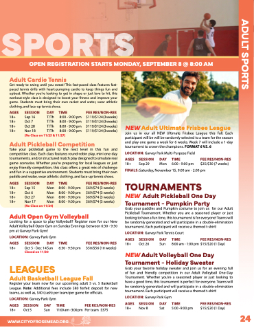 OPEN REGISTRATION STARTS MONDAY, SEPTEMBER 8 @ 8:00 AM