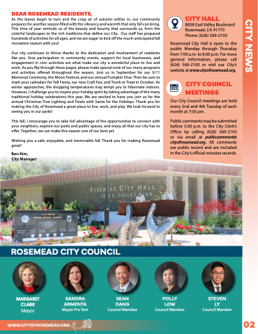 making the City of Rosemead a great place to live, work, and play. We look forward to