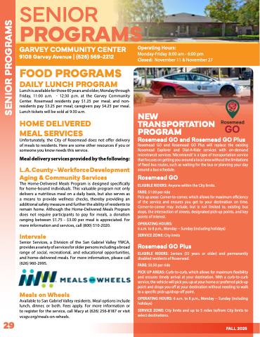Center. Rosemead residents pay $1.25 per meal; and non-