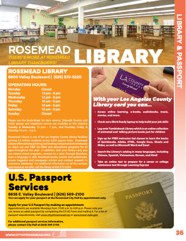 passport requirements, visit www.cityofrosemead.org or www.travel.state.gov.