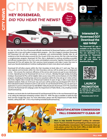 and efficient transportation to the City's senior and disabled community. Together, Rosemead GO and
