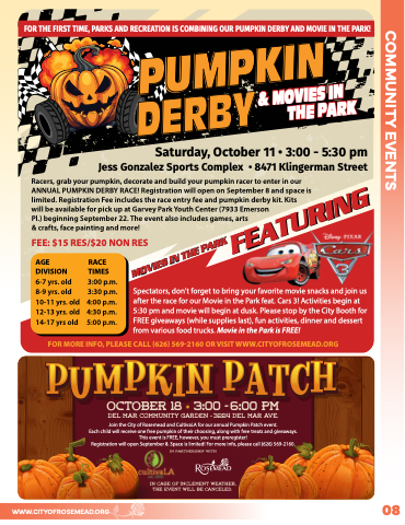 FOR MORE INFO, PLEASE CALL (626) 569-2160 OR VISIT WWW.CITYOFROSEMEAD.ORG