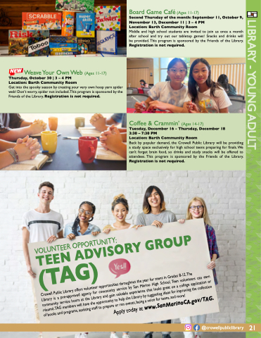 Apply today at www.SanMarinoCA.gov/TAG. @crowellpubliclibrary 21