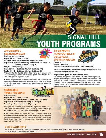 Signal Hill. Fees can be paid in person at the Signal Hill Youth Center.