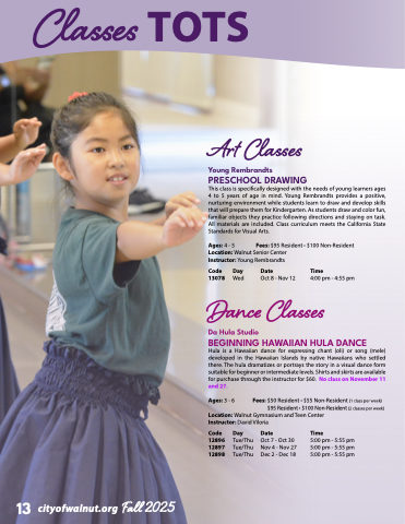 Ages: 3 - 6 Fees: $50 Resident • $55 Non-Resident (1 class per week)