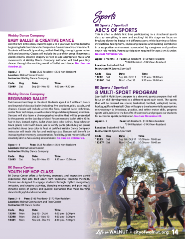 Ages: 4 - 6 Fees: $125 Resident • $130 Non-Resident