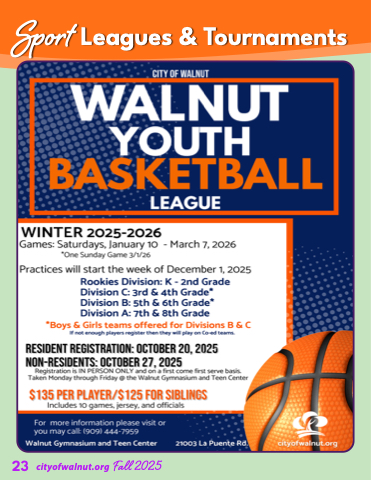 Sport Leagues & Tournaments 23 cityofwalnut.org Fall 2025