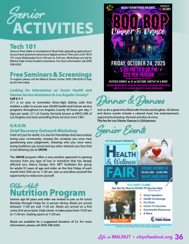 Free Seminars & Screenings To register please call the Walnut Senior Center, (909) 598-6200 or stop