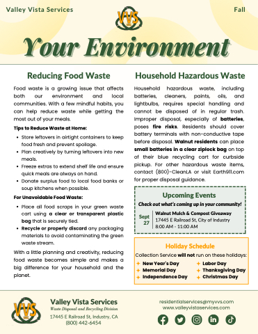 before disposal. Walnut residents can place